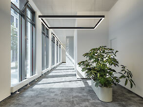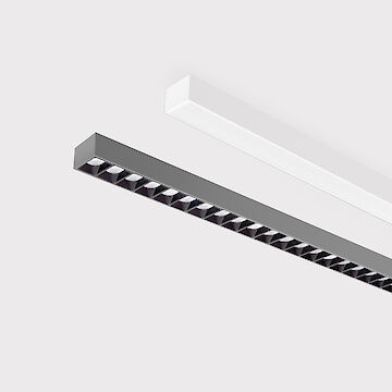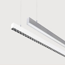 Direkt-indirekt oder rein direktstrahlend. Lichtkanal aus Aluminiumprofil mit 55mm Profilbreite. Millimetergenaue Längenfertigung nach Vorgabe möglich. Oberfläche natureloxiert oder weiß, graphit, schwarz, champagner oder kupferfarben lackiert. Weitere Oberflächenoptionen siehe Lightnet-Surface-Collection oder RAL nach Wahl. Direktanteil über Präzisionslinsen mit Abblendraster für breite rotationssymmetrische Lichtstärkeverteilung bei gleichzeitig hoher Blendungsbegrenzung (UGR<19). Abblendraster in verschiedenen Farbkombinationen erhältlich. Microprismenoptik aus Spezialacrylglas mit optimierter Blendungsbegrenzung für Office-Anwendungen. Satinierter Opaldiffusor für Allgemeinbeleuchtung mit max. Transmissionsgrad und homogener Lichtpunktauflösung. Wallwasher für homogene Beleuchtung vertikaler Flächen. Konverter in Leuchtengehäuse integriert, wahlweise einfach schaltbar oder stufenlos dimmbar (DALI, Touch Dim, Casambi). Farbtemperatur 2200K, 2700K, 3000K, 3500K, 4000K, 6500K oder Tunable White (2700-6500K). Binning initial ≤ MacAdam 3. Farbwiedergabe CRI>80, CRI>90 oder Full Spectrum. Stufenlos höhenverstellbare Y-Seilabhängung mit transparent ummantelter Zuleitung. Lackierung Baldachin passend Leuchtenkörper. Auf Anfrage: Integration von Stromschienen und Strahlern, Notlichtkomponenten, Sensortechnologie.