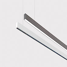 Direkt-indirektstrahlend. Lichtkanal aus Aluminiumprofil mit 25mm Optikbreite. Oberfläche natureloxiert oder weiß, graphit, schwarz, bronze oder kupferfarben lackiert. Weitere Oberflächenoptionen siehe Lightnet-Surface-Collection oder RAL nach Wahl. Direktanteil über Präzisionslinsen mit Abblendraster für breite rotationssymmetrische Lichtstärkeverteilung bei gleichzeitig hoher Blendungsbegrenzung (UGR<19) für Office Anwendungen. Abblendraster in verschiedenen Farbkombinationen erhältlich. Satinierter Opaldiffusor für Allgemeinbeleuchtung mit max. Transmissionsgrad und homogener Lichtpunktauflösung. Wallwasher für homogene Beleuchtung vertikaler Flächen. Konverter in Leuchtengehäuse integriert, Lichtkammern für direktes und indirektes Licht getrennt schaltbar oder dimmbar (DALI, Casambi). Farbtemperatur 2200K, 2700K, 3000K, 3500K, 4000K oder 6500K. Binning initial ≤ MacAdam 3. Farbwiedergabe CRI>80, CRI>90 oder Full Spectrum. Stufenlos höhenverstellbare Seilabhängung mit transparent ummantelter Zuleitung. Lackierung Baldachin passend Leuchtenkörper.