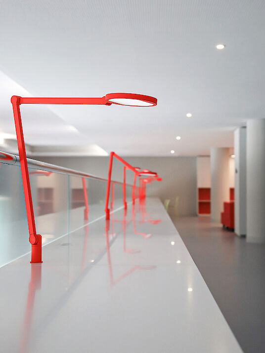 Lucille directs the light exactly where it is needed. The luminaire head can be positioned flexibly and precisely and offers a wide operating range of up to 1m. The high-quality and filigree pantograph with precision joints made of aluminum manages completely without visible cables, springs or ropes. Behind the timeless and clear design hides an efficient lighting technology with a luminous flux of 1000lm. At the luminaire head Lucille can be dimmed via a touch field. A variety of adaptations are available for various table and wall mountings.