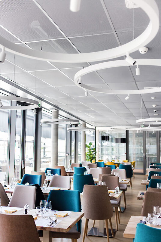 The tracks can be made custom as pendant, surface-mounted and recessed versions. The internal reflector ring can be painted in different colors and provides a decorative accent.