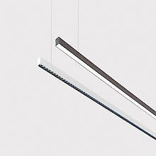 Direct-indirect or direct-only light distribution. Light channel made of aluminium profile with 25mm optic width. Surface natural anodised or white, graphite, black, bronze or copper coated. For further surface options see Lightnet-Surface-Collection or RAL of your choice. Direct light using precision lenses with louvre for wide uniform symmetrical light distribution with high glare limitation (UGR<19) especially for workplaces. Louvre available in various colour finishes. Satin opal diffuser for general lighting with maximum transmittance and uniformity. Wallwasher for uniform illumination of vertical surfaces. Driver integrated into luminaire housing, optionally switchable or dimmable (DALI, Touch-Dim, Casambi). Colour temperature 2200K, 2700K, 3000K, 3500K, 4000K or 6500K. Binning ≤ MacAdam 3. Colour rendering CRI>80, CRI>90 or Full Spectrum. Height-adjustable cord suspension with transparent power supply cable. Ceiling rose in matching colour to the luminaire body.