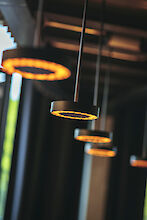 Direct-indirect or direct-only light distribution. Luminaire body made of aluminium profile with 40mm profile width. Compact version with central blank plate. Surface white, silver, graphite, black, champagne or copper coated. For further surface options see Lightnet-Surface-Collection or RAL of your choice. Direct light using precision lenses with louvre for wide uniform symmetrical light distribution with high glare limitation (UGR<19) for workplaces. Louvre available in various colour finishes. Driver integrated into central blank plate, optionally switchable or dimmable (DALI, Touch-Dim). Colour temperature 2200K, 2700K, 3000K, 3500K, 4000K or 6500K. Binning ≤ MacAdam 3. Colour rendering CRI>80, CRI>90 or Full Spectrum. Height-adjustable central cord suspension with transparent power supply cable or rod suspension. On request: Integration of sensor technology, ventilation outlets, loudspeakers, surveillance cameras and additional downlights in the central blind element.