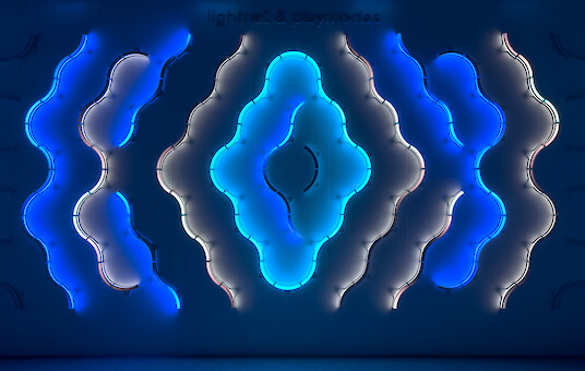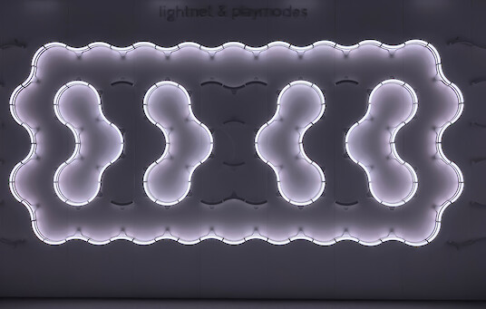 Liquid Tiles es el resultado de una estrecha colaboración entre Lightnet y el estudio catalán Playmodes. Mientras que los artistas Santi Vilanova y Eloi Maduell desarrollaron el firmware específico, el software y los sistemas generativos para esta instalación, en Lightnet investigamos, diseñamos y fabricamos internamente todos los componentes de hardware. El proceso de desarrollo estuvo estrechamente interrelacionado, inspirado, entre otras cosas, en nuestro sistema de productos Liquid Line y en nuestra experiencia en arquitectura lumínica modular.