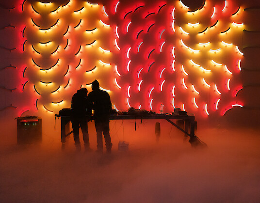 El resultado es un flujo continuo de configuraciones de luz y sonido cambiantes que parecen un organismo casi vivo. Las fronteras entre el objeto físico y el proceso digital, entre el proceso programado y el efecto orgánico, comienzan a difuminarse.