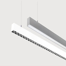 Iluminación directa e indirecta. Canal de luz hecho de perfil de aluminio con un ancho de vía de luz de 55mm. Las longitudes pueden ser fabricadas al milímetro de acuerdo con las especificaciones. Superficie anodizada natural o lacado de blanca, grafito, negro, champagne o cobre. Acabados adicionales según Lightnet-Surface-Collection o RAL seleccionable. Componente para iluminación directa a través de lentes de precisión con persiana antideslumbrante para una amplia distribución de luz simétrica en rotación con un alto índice del deslumbramiento (UGR<19) para uso en oficinas. Rejilla antideslumbrante disponible en varias combinaciones de colores. Óptica microprismática de cristal acrílico especial con limitación del deslumbramiento optimizada para el uso en oficinas. Difusor opal satinado para iluminación general con grado máximo de transmisión y resolución homogénea del punto de luz. Bañador de pared para la iluminación homogénea de superficies verticales. Driver integrado en la carcasa de la luminaria, cámaras de iluminación para luz directa e indirecta conmutables por separado o regulables (DALI, Casambi). Temperatura de color 2200K, 2700K, 3000K, 3500K, 4000K, 6500K o Tunable White (2700-6500K). Binning inicial ≤ MacAdam 3. Índice de reproducción cromática CRI>80, CRI>90 o Full Spectrum.