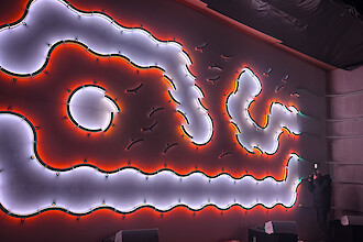 Il en résulte un flux continu de configurations lumineuses et sonores changeantes, qui apparaît comme un organisme quasi vivant. Les frontières entre l'objet physique et le processus numérique, entre le déroulement programmé et l'effet organique, commencent à s'estomper.