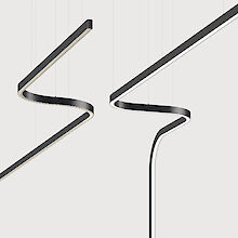 Height-adjustable parallel cord suspension with transparent power supply cable. Colors canopy match to luminaire body.