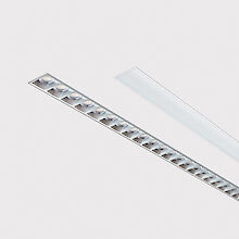 Microprismatic screen made of special acrylic glass and satin Louvre made of aluminum with optimized glare reduction especially for workplaces Satin opal diffuser for general lighting with maximum transmittance and homogeneous lighting. Wallwasher for homogeneous illumination of vertical surfaces.