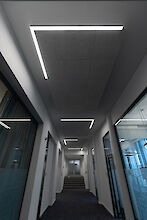 Direct light using precision lenses with louver for wide uniform symmetrical light distribution with high glare limitation (UGR<19) especially for workplaces. Louver available in various color finishes. Microprismatic screen made of special acrylic glass with optimized glare reduction especially for workplaces. Satin opal diffuser for general lighting with maximum transmittance and homogeneous lighting. Wallwasher for homogeneous illumination of vertical surfaces.