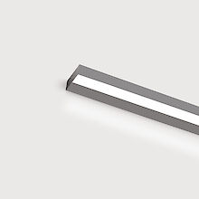Extruded Aluminum. LED surface-mounted luminaire for horizontal wall mounting (ceiling mounting possible on request). Direct only light distribution. Bespoke lengths possible. Fully enclosed and damp rated.